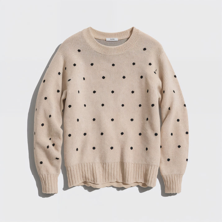 Stay stylish this season with a chic ruffled hem sweater, perfect for adding a touch of elegance to your wardrobe. The vibrant red polka dot design effortlessly blends comfort and trend for everyday wear.